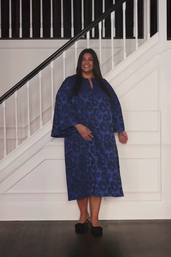 Get swingy with it. The Swing Dress has a free-flowing silhouette, tapered bell sleeves, and a notched collar. Our lightweight cotton jersey version is perfect for summer days (and can be easily tossed into your carry-on) while our thicker-feeling cobalt jacquard transcends seasons.